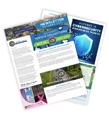 Download The Latest Newsletter October 2025 Download Now Download Past Newsletters 2025 2024 2023 2022 January 2024 February 2024 March 2024 April 2024 May 2024 June 2024 July 2024 August 2024 September 2024 October 2024 November 2024 December 2024 January 2025 February 2025 March 2025 April 2025 May 2025 June 2025 July 2025 August 2025 October 2025 January 2023 February 2023 March 2023 April 2023 May 2023 June 2023 July 2023 August 2023 September 2023 October 2023 November 2023 December 2023 September 2022 October 2022 November 2022 December 2022 Stay up to date on what is happening in Will County. If you would like to receive monthly newslettersfrom Will County, please fill out the form below. Newsletters are sent once a month via email. Name First Last Email I understand that by filling out this form I will receive monthly newsletters from Will County(Required) Yes Δ